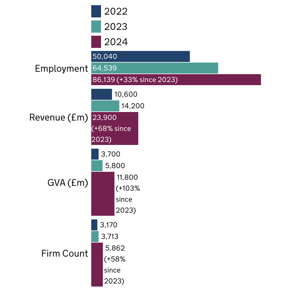 Gross Value Added (GVA): The sector’s GVA more than doubled, increasing by 103% to £11.8 billion.